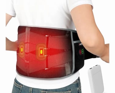 Stay cozy anywhere with this 5000mAh battery-powered heating pad—no cords, no limits. Features dual adjustable elastic straps for a secure, comfortable fit up to 58”. Enjoy 3 heat levels (113°F–158°F) and 3 soothing vibration modes for customizable relief on your lower back, waist, or abdomen.